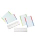 Tiras largas superiores de 290mm. · 25 unidades por hoja. · En paquetes de 10 hojas A4. · Impresión frontal y trasera en colores: Rojo, Azul, Verde y Amarillo.
