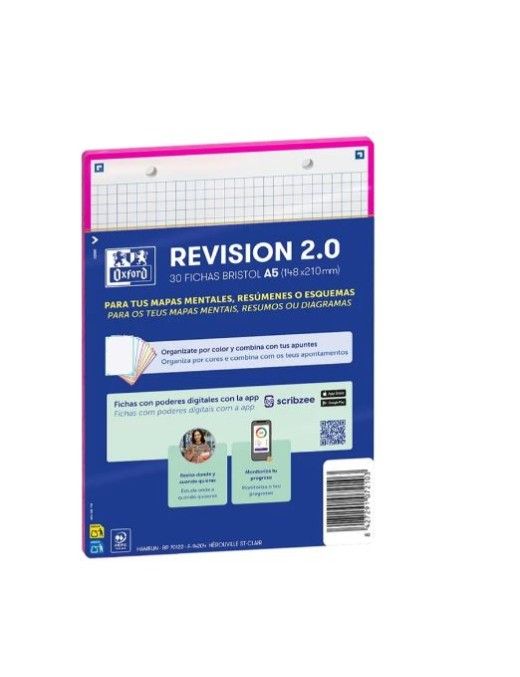 Prepárate para tus exámenes sin estrés con las fichas REVISION 2.0. Organiza tus apuntes de forma inteligente con el sistema de codificación por color de Oxford: usa el mismo color de recuadro para apuntes, resúmenes y conceptos clave, y encuentralo todo más rápido. Si olvidas tus fichas en casa, Scribzee« tiene la solución: escanéalas, guárdalas en la nube y accede a ellas desde cualquier dispositivo. Aprovecha cada momento para repasar, ya sea en el transporte público o en un descanso. Además, podrás hacer un seguimiento de tu estudio con etiquetas de estado (Pendiente, En progreso y Terminado). Fabricadas con cartulina premium de 250 g, son resistentes y cómodas para escribir.