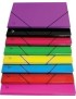 Carpeta de solapas en cartón forrado, en papel impreso plastificado mate, y goma negra con un tamaño de 340 x 260 mm.