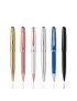 Bolígrafo con mecanismo de giroClip, anilla y punta a juegoClip robusto y duraderoRecambio tamaño M con tinta resistente a los documentosCañón superior e inferior lacadosMetal 100% reciclableColores: rosa, verde, blanco, negro, azul, gris y violeta.