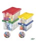 Con asas integradas en la tapa para conferirles una mayor resistencia. Con tratamiento en la superficie de la base que otorga una mayor resistencia al rayado, con transperencia en una de las caras para visulizar mejor el contenido. Tapas en colores surtidos. Colores tapas: rojo, verde, amarillo y azul.