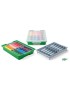 Fabricada en polipropileno. Muy resistente. Caja de plástico en color verde con tapa transparente y bandeja clasificadora en color gris de 12 departamentos para clasificar: lápices, etc... Medidas: 420x310x73 mm