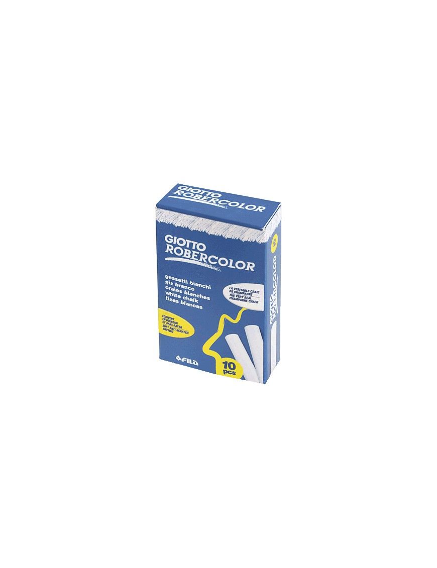 ROBERCOLOR Tizas Caja 10 ud Blanco 538700 Cód artículo: 735881 "Tizas redondas antipolvo fabricadas con la auténtica tiza de la ""Champagne"", Francia. Dermatológicamente testadas, para minimizar el riesgo de alergias. No contienen gluten."
